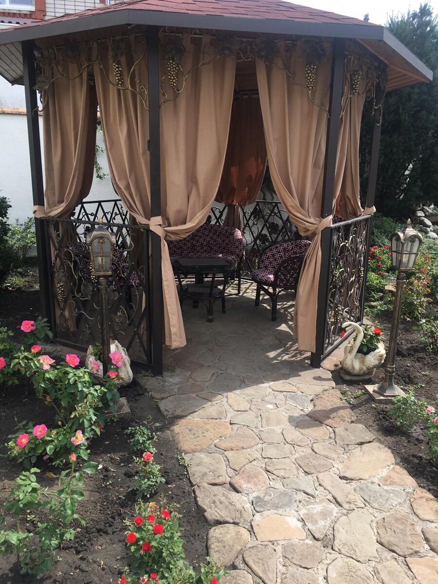 Готовую беседку всегда хочется украсить, облагородить, сделать по-домашнему уютной. Проще всего это сделать, если