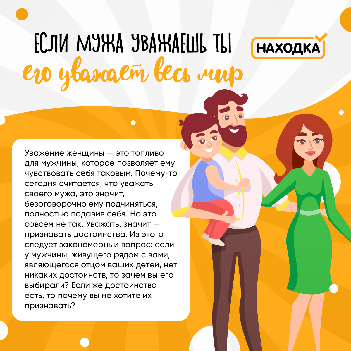 Ценить тот вклад, который мужчина привносит в семью.