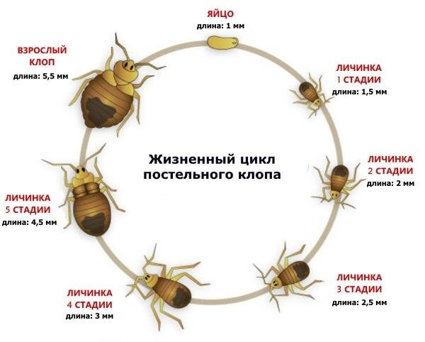 Размер яйца постельного клопа с игольное ушко , а взрослый клоп гораздо меньше рисового зернышка.