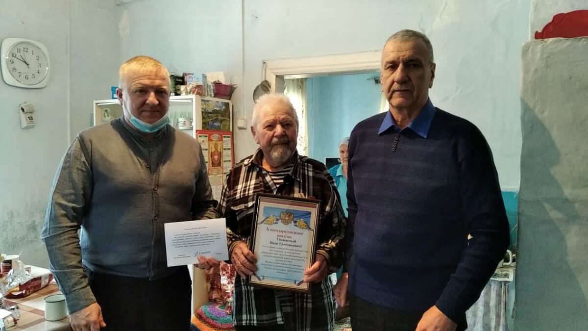 Ветерану Великой Отечественной войны, труженика тыла Ивану Григорьевичу руководитель Управления социальной защиты населения Уйского района Андрей Приданников и глава Ларинского сельского поселения Риннат Зинатуллин торжественно вручили поздравление от президента Российской Федерации Владимира Путина, Благодарственное