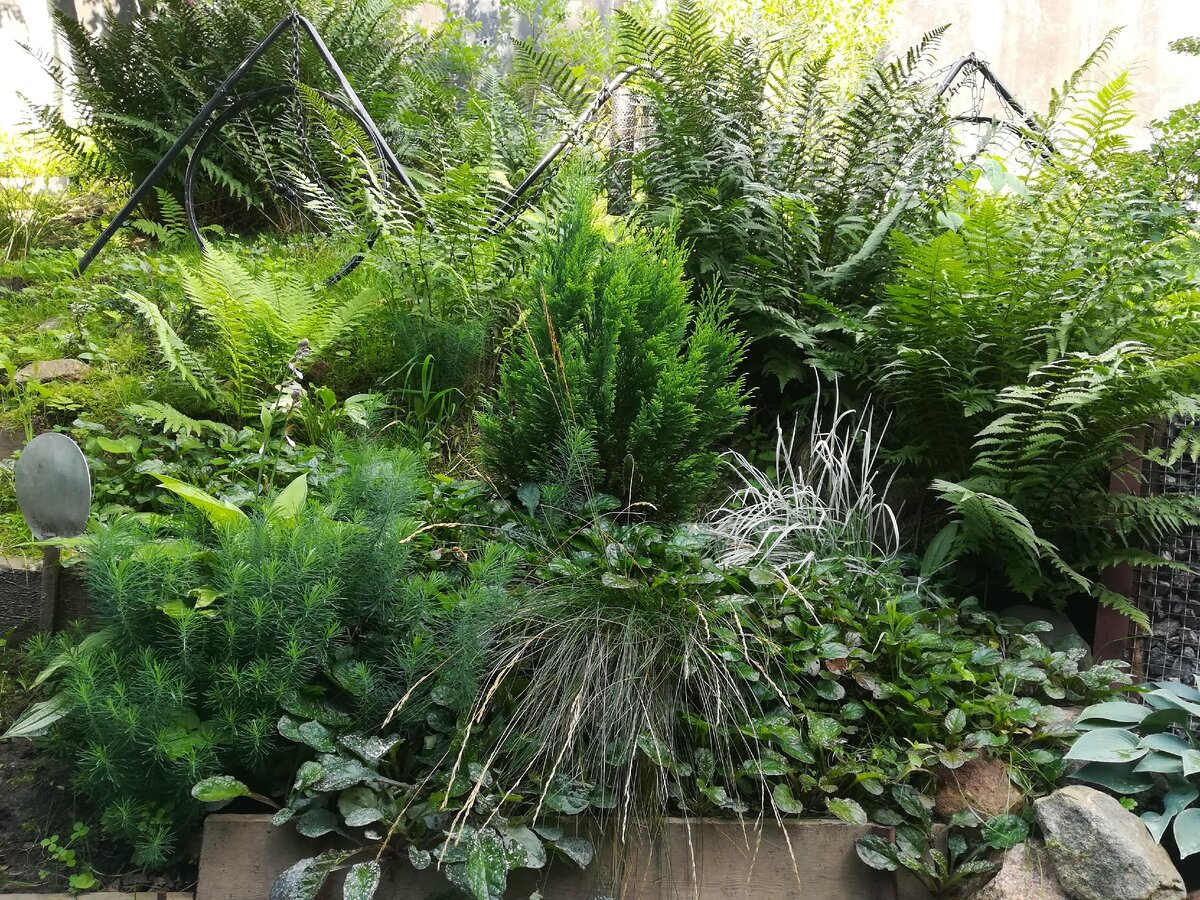Весной посадила у верхней границы пару хвойных маленьких. Подумала и пересадила на большой склон, не понравилось.