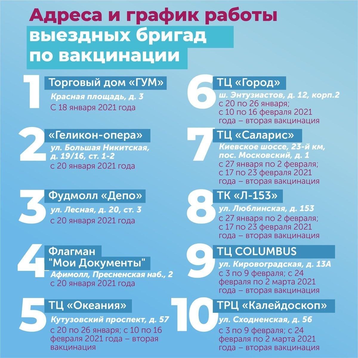 Режим работы мобильных пунктов вакцинации в Москве