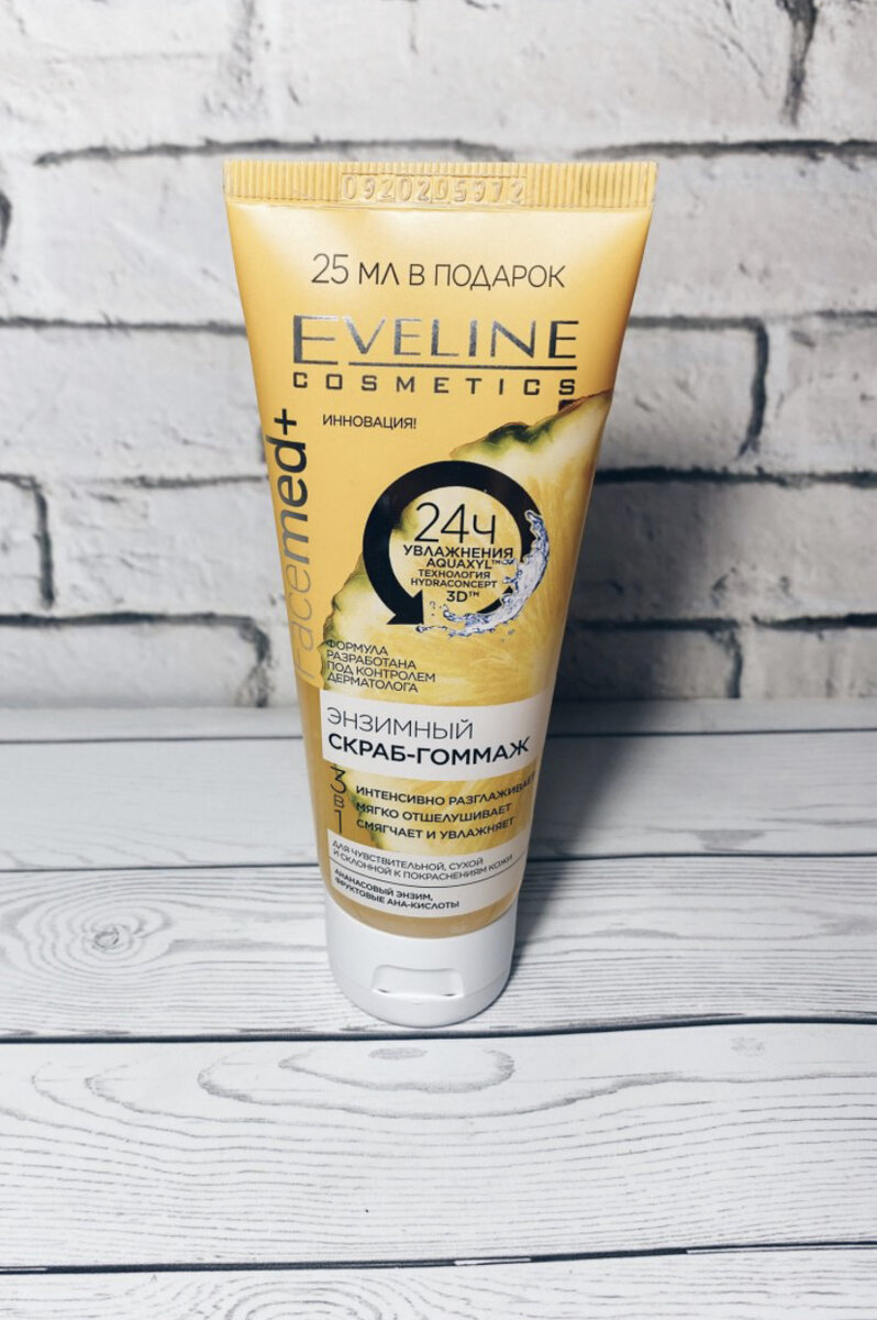 Я как обладательница комбинированной кожи лица и жирной в Т-зоне с точечными воспалениями, поэтому уход за кожей у меня по полной: умывалка, тоник, сыворотка, крема для лиц и век, скрабы и скатки. А недавно я познакомилась с Энзимным скрабом-гоммажем Eveline Ананасовый энзим.
