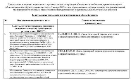 Предложения в перечень нормативных правовых актов, содержащих обязательные требования, проведение оценки соблюдения которых будет допускаться после 1 января 2021 г. при осуществлении государственного контроля (надзора), муниципального контроля, предоставлении государственных и муниципальных услуг («белый список»)