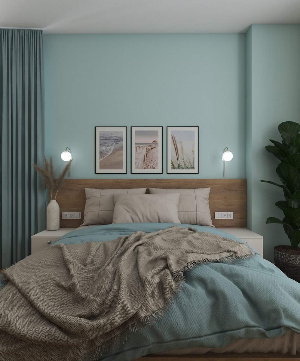 В этой комнате изначально все сложилось без каких-либо глобальных изменений, так же заменили только цвет у декоративной стены, с зеленоватого оттенка на голубой. Голубой цвет решили оставить только в этой комнате.