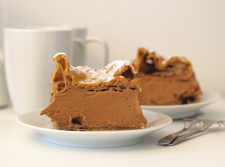 Это классическая карпатка(заварной пирог) в несколько другом облике. В тесто добавляется какао, а в крем какао и горький шоколад.