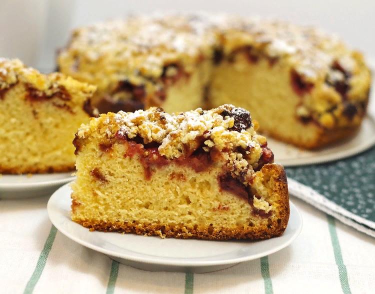 На тесто выложите фрукты. Далее все посыпается тертой на терке с большими дырками крошку.