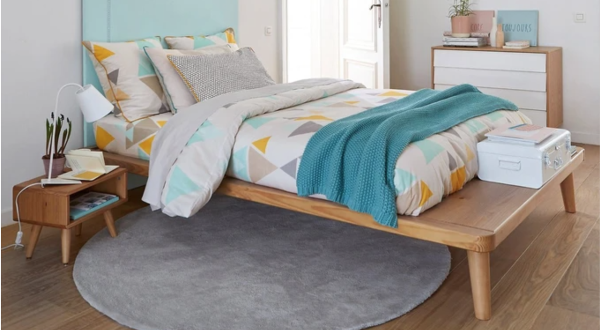 Кровать из дерева способна придать комнате более рустикальный эффект. Простая и немного грубая, она создаст тёплую атмосферу скандинавского стиля, что особенно хорошо получается делать при использовании светлого дерева, такого, как массив сосны.