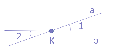 На рисунке угол 1 и 2 являются вертикальными и нужно запомнить, что вертикальные углы всегда равны.