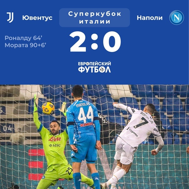 В матче за Суперкубок Италии туринский «Ювентус» встречался с «Наполи». Встреча прошла на стадионе «Мапей — Читта-дель-Триколоре» в Реджо-нель-Эмилии и завершилась победой туринской команды со счётом 2:0.