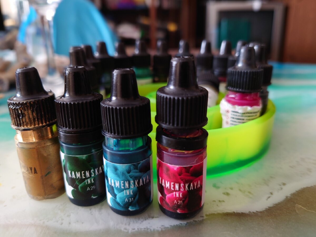 А работы с чернилами вот (листайте галерею) Там есть и мои картины со смолой и примеры из интернета просто на пластике: