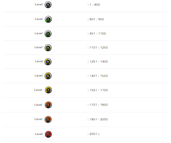 Игра распределяет игроков по 10 разным уровням:
