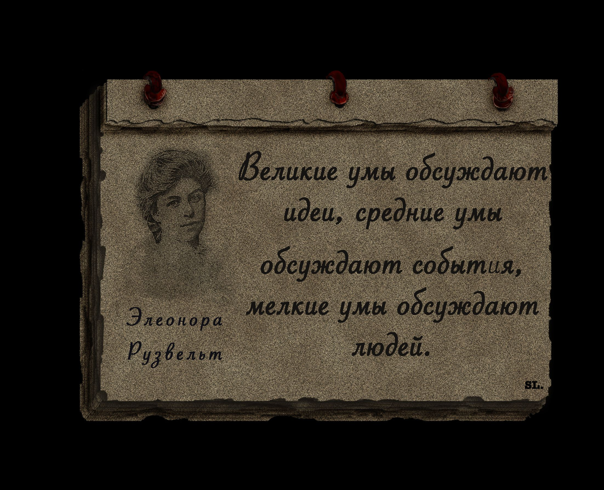 Элеонора Рузвельт: "Великие умы обсуждают идеи. Средние умы обсуждают события. Мелкие умы обсуждают людей."