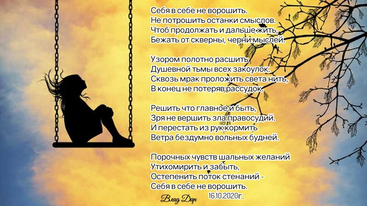 Иногда, а может и взять за правило - не ворить старое и вскрывать затянувшиеся раны. Найти спокойствие внутри себя.