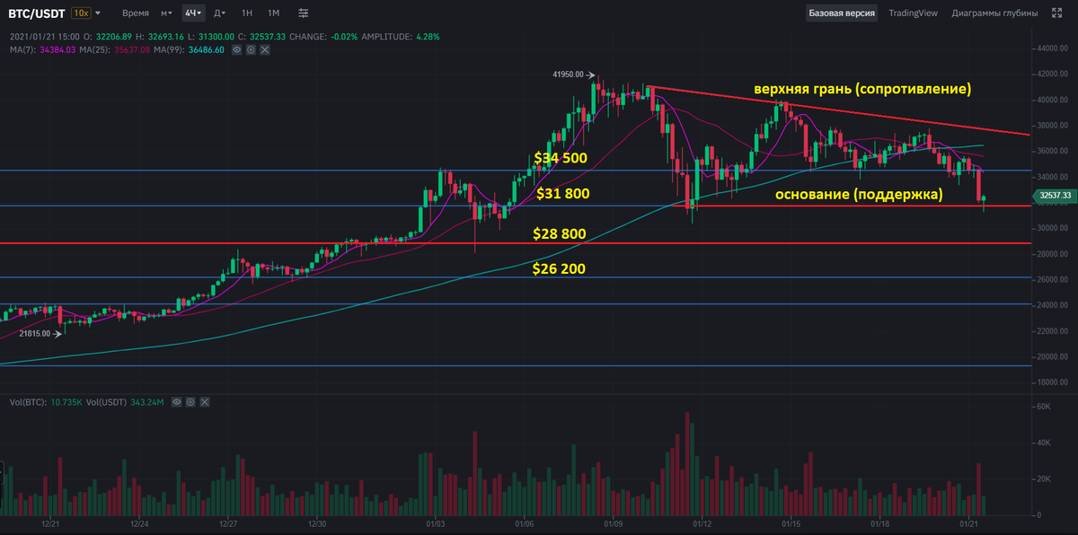 Как и было сказано в предыдущем обзоре, биткоин не удержался на своих прежних уровнях и продолжил свое неизбежное падение. Мало кто из держателей BTC сейчас хочет остаться на обочине профита. Поэтому в любой момент на рынке может начаться паника, которая повлечет за собой еще большее падение со стороны держателей биткоина. Сейчас мы как раз и