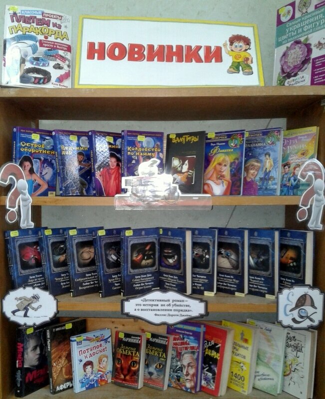 На выставке представлены книги из серии «Золотая библиотека детектива», классиков мирового детективного романа – Эдгара По «Черный кот», «Сфинкс», «Сапфировый крест» и др., Артура Кона Дойла «Собака Баскервилей», «Король страха» и др., Эдгара Уоллеса «Лицо во мраке»,