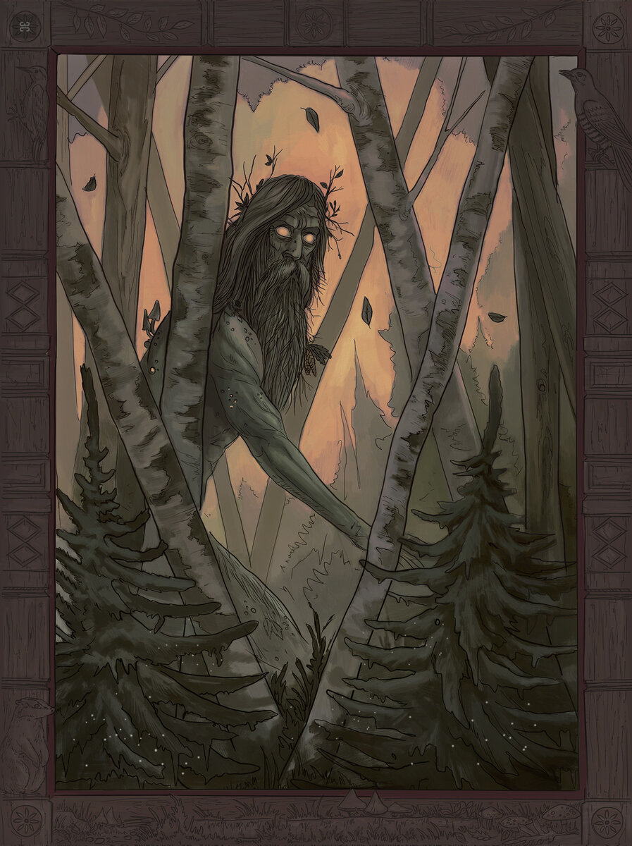 В лицо ударил ледяной ветер с хлопьями снега, визг метели со стонами леса, навалился на уши. Тусклый свет из прорези в ставнях освещает крохотный участок заснеженного двора и... высокую фигуру с непропорционально длинными руками. Существо застыло, склонило плетёную голову набок и проскрипело: