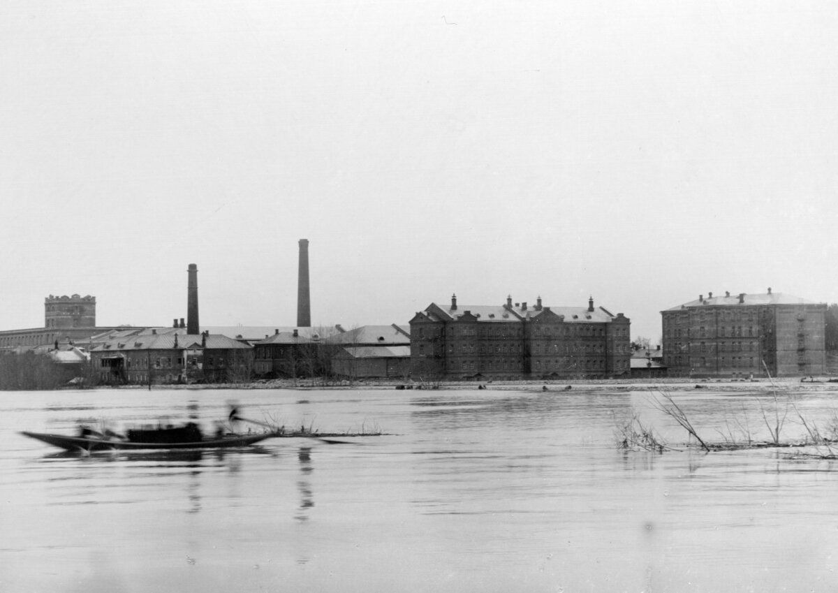 Фотографии наводнения 1908 года хорошо известны. Это Улитинские снимки, где запечатлен Механический завод под Соборной горой, затопленный Нарой.