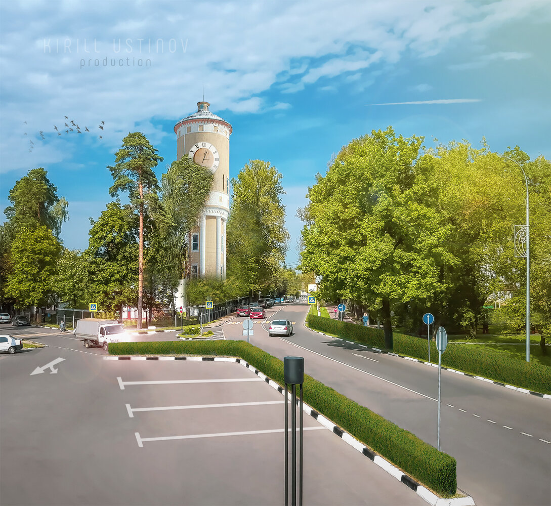 Улучшение уличного пространства на примере центральной улицы п. Власиха Московской области с помощью Adobe Photoshop.