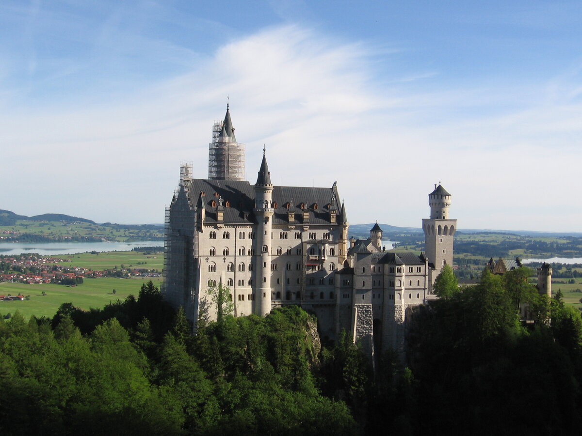 Нойшванштайн построили высоко в горах, на руинах двух средневековых замков. Для этого пришлось взрывать скалы, чтобы подготовить плато для возведения «сказочного дворца». Во время его строительства Людвиг II писал своему своему духовному вдохновителю Вагнеру:
