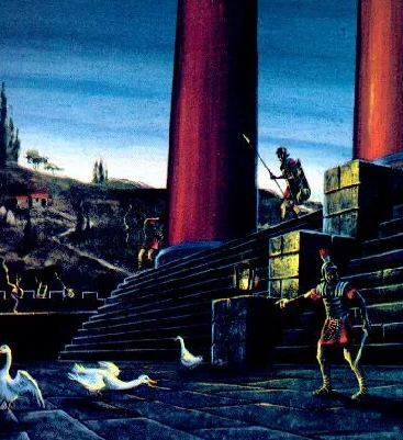 Нашествие галлов началось около 390 г. до н. э. (или 387 г. до н.э.). Одно из галльских племен во главе с вождем Бренном форсировало горные проходы в Северных Апеннинах, стало опустошать Юго-Восточную Этрурию и достигло границ Н ция. Попытки римлян остановить галльские орды не увенчались успехом. В кровопролитной битве недалеко от Рима на берегах речки Алии римское войско было разгромлено, город был взят галлами, разграблен и сожжен. Население Рима рассеялось по деревням, а остатки римского войска за перлись в крепости Капитолии. Галлы не умели брать сильно укрепленные крепости, а их многомесячная осада оказалась безрезультатной. Одна из ночных атак галлов почти привела к успеху, но Капитолий спасли чуткие гуси — священные птицы, находящиеся в храме Юноны. От их страшного гогота проснулись римские воины и сбросили первых галлов, уже поднявшихся на вершину Капитолия.