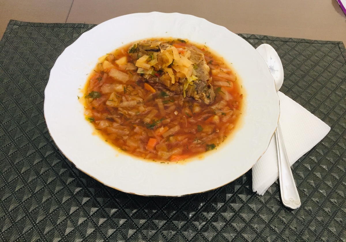 - Нашинковать капусту и добавить в суп, варить до готовности.