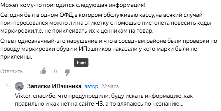 Из чего делаю вывод, что я всё сделала правильно и переделывать ничего не буду. Если у проверяющей стороны (тьфу три раза 😉) возникнут вопросы, сошлюсь на ответ техподдержки. Думаю, они не просто так получают свою з/п и компетентны в вопросах маркировки не менее, налоговых служб.