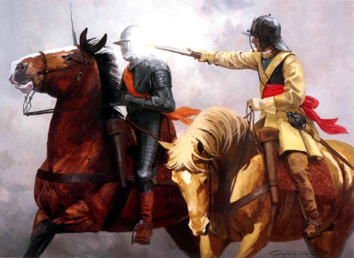 У художника Грэма Тернера есть картина, изображающая один из боевых эпизодов той войны. На ней роялист в упор стреляет в кавалериста, воюющего за парламент.