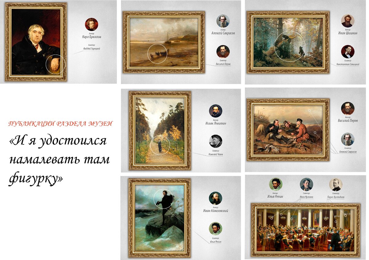 Айвазовский и Пушкин встретились в 1836 году на выставке в Академии художеств, где мариниста представили как одного из самых талантливых учеников. Позже Айвазовский по памяти изобразил Пушкина на 20 картинах — на всех поэт нарисован в отдалении. В конце 1870-х годов Айвазовский взялся за монументальное полотно — «Прощание Пушкина с морем», а крупную фигуру Пушкина на переднем плане попросил написать своего друга — Илью Репина. Тот вспоминал: «Дивное море написал Айвазовский... И я удостоился намалевать там фигурку». Критики называли репинского Пушкина одним из самых достоверных портретов поэта.