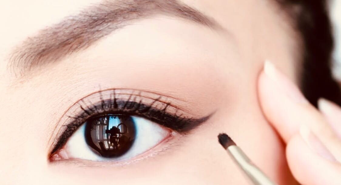- Нанесите жидкую подводку поверх карандаша.