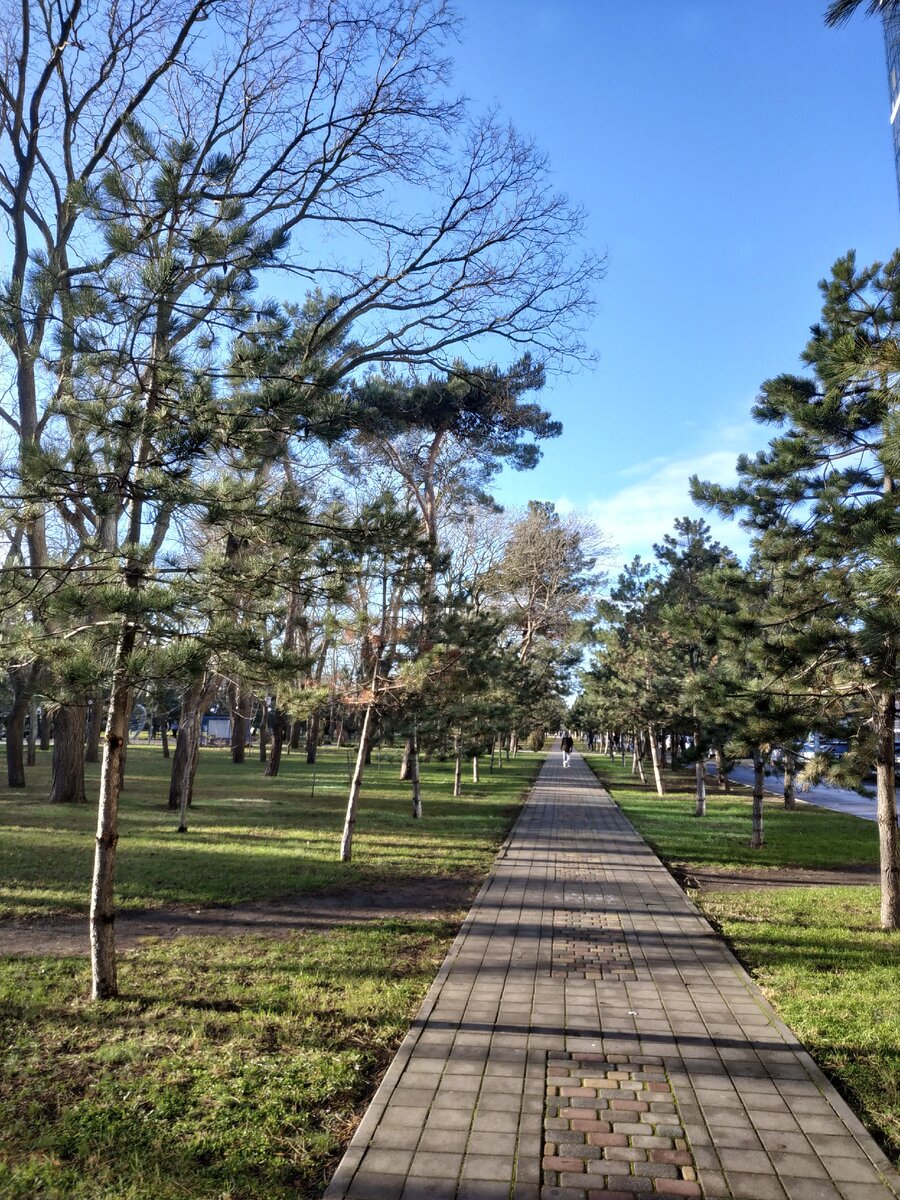 Моя любимая скамейка в парке, где я читаю, болтаю по телефону, переписываюсь с друзьями или пишу в Дзен. Напротив второго корпуса санатория "Дилуч". Когда я впервые приехала в Анапу после 6 курсов антибиотиков от вирусной пневмонии -- то выйти из номера,спуститься с крыльца корпуса санатория "Дилуч" и дойти до этой скамейки было самым длинным моим путешествием. За ветками сосны видно здание корпуса санатория.