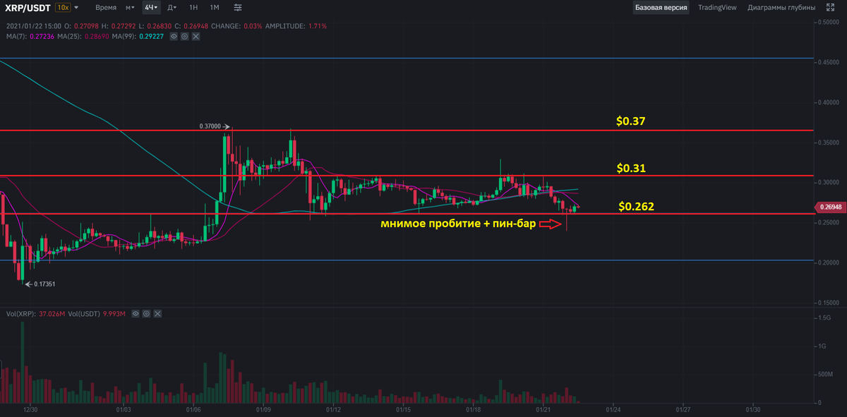 $0.262, $0.31 и $0.37. Выход из этого ценового диапазона возможен в 20-х числах февраля, ведь предварительное судебное заседание по поводу иска SEC в отношении Ripple назначено на 22 февраля этого года.