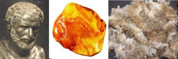 Внимательный философ заметил, что к уже натертому драгоценному камню притягиваются мелкие предметы. Хотя по логике, сформированной на уровне знаний того времени, все предметы должны были притягиваться к земле, т.е. падать на землю под действием сил притяжения. Однако натертый шерстью янтарь приобретал некоторое загадочное свойство, впоследствии названое зарядом, который создавал силу по величине превосходящую силу земного притяжения. И эта сила получила название «электричество». Так как слово «электрон» с греческого переводится «янтарь», то электричество дословно можно перевести янтаричество.