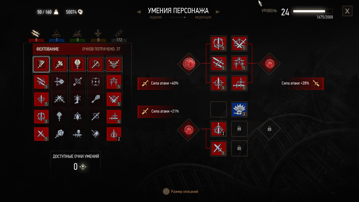 В разделе "фехтование" я качаю только Быстрые атаки и Боевой транс. Мне не нравиться арбалеты (т.к ини бесполезны) Мощные атаки (слишком медленные для меня) И защита (Она в принципе не нужно если у тебя хорошая броня). Тут я посоветую "Память тела" "Бесмертие" "Вихрь" и "Сковывающие удары".