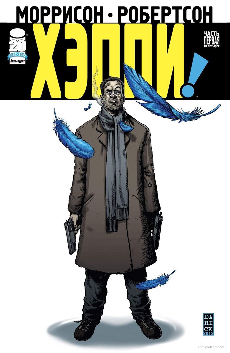 "Хэппи!" - это мини серия американских комиксов, написанная Грантом Моррисоном и иллюстрированная Дариком Робертсоном. Была выпущена издательством Image Comics в 2012 году. Написана в жанрах боевик, мистика, комедия, фантасмагория. Полностью завершенная история, которая раскрыта в количестве 4 эпизодов.