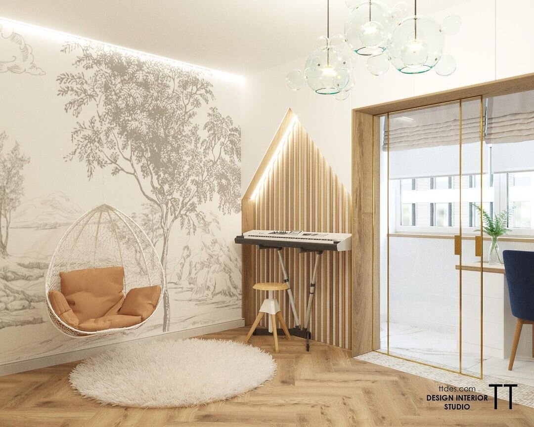 В сегодняшнем проекте комнаты для девочки от студии дизайна tt_interior присоединение лоджии при помощи раздвижных перегородок успешно прошло согласование по всем нормам.