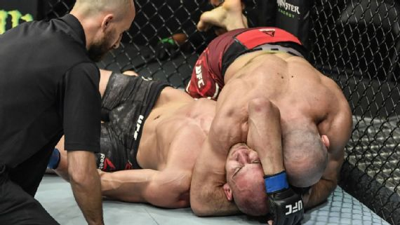Нурмагомедов, который прошлой осенью был признан американским каналом ESPN одним из 10 лучших бойцов в возрасте до 25 лет, использовал свой пятый "тейкдаун" в середине второго раунда, чтобы занять доминирующую позицию за спиной противника, после чего он последовал громким рекомендациям своего титулованного брата из-за угла и "забрал" шею на удушающий, закончив поединок на 3:39 минуте второго раунда.