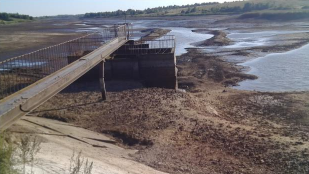Водоем на этом фото был спущен из-за того, что в нём обнаружили кишечную палочку, только вот никуда она не делась, а просто ушла в другое место, просто потому что водохранилище было спущено за счёт поднятия шлюза. Вода просто утекла по небольшой речке куда-то в другое место, но зато таким образом наши власти решили свою проблему, перекинув её на кого-то другого.