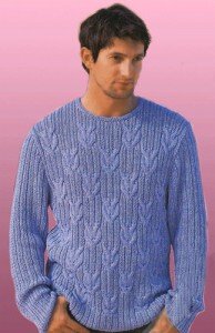 Вам потребуется: 700 (750) 750 г голубой меланжевой пряжи Denim (99% хлопка, 115 м/50 г); прямые и круговые спицы № 4.
