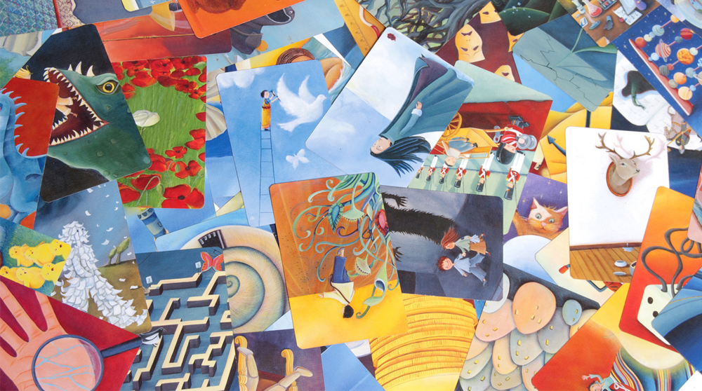 Карты можно сделать самим, можно купить специальные наборы, а можно использовать карты из уже готовых настольных игр типа «Имаджинариум» и «Диксит». Для детей лучше выбирать наборы с мультяшными и просто приятными изображениями. Например: «Сказка внутри тебя», «Расправляя крылья», «Самый счастливый день» и другие.