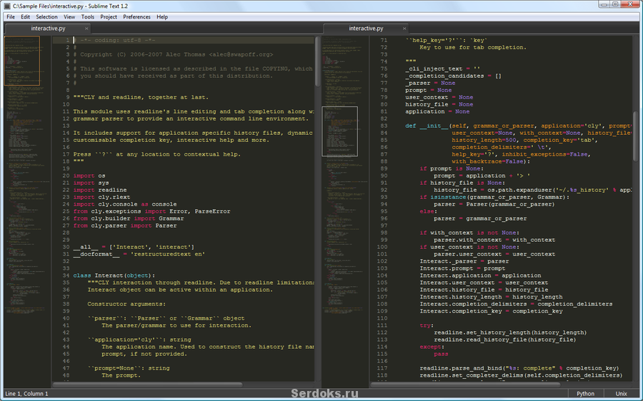 - Кроссплатформенность. Sublime доступен в Windows, OS X и Linux. Разработчикам требуется только одна лицензия для использования Sublime на любых своих компьютерах.