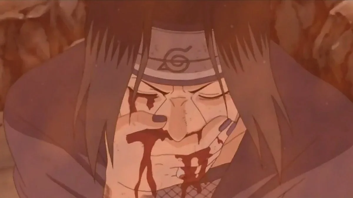 Другие подобные симптомы можно увидеть во время его последней битвы с Саске, когда Итачи хватается за рубашку, реагируя так, будто это сердечный приступ.