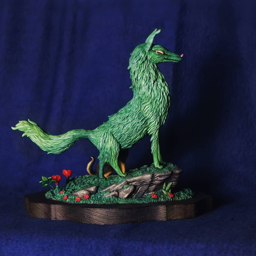 Зеленый фэнтезийный волк и щенок своими руками