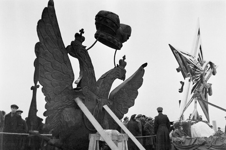 Свастика была изображена на «керенках», свастики рисовала на стене Ипатьевского дома императрица Александра Фёдоровна перед расстрелом, но почти единоличным решением Троцкого большевики остановились на пятиконечной звезде. История XX века ещё покажет, что «звезда» сильнее «свастики»... Звёзды засияли и над Кремлем, сменив двуглавых орлов.