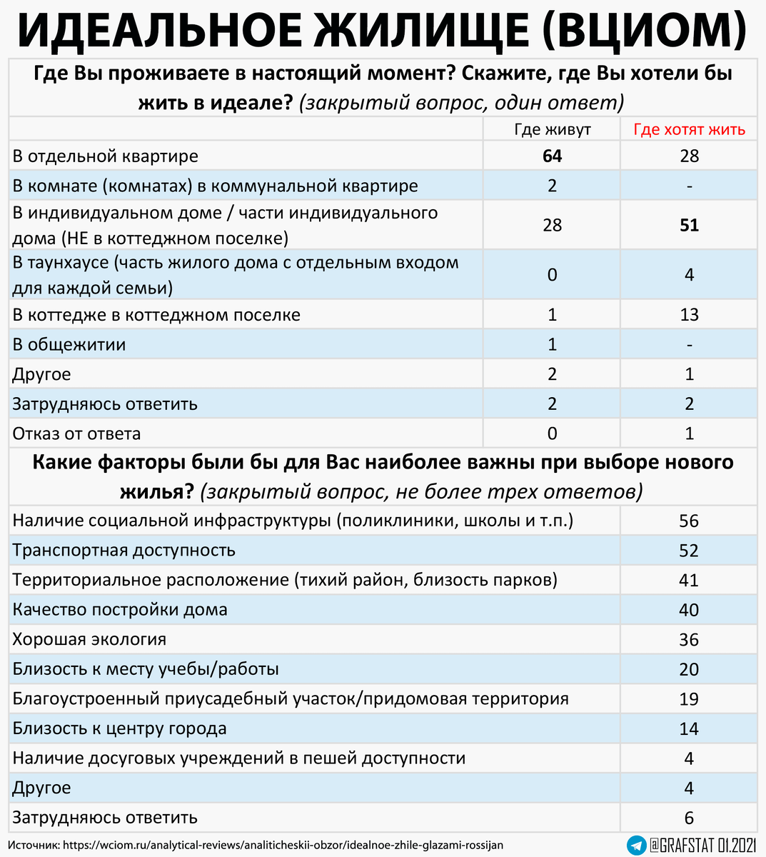 - 64% в частном доме (51% в частном доме + 13% в коттедже в коттеджном поселке)