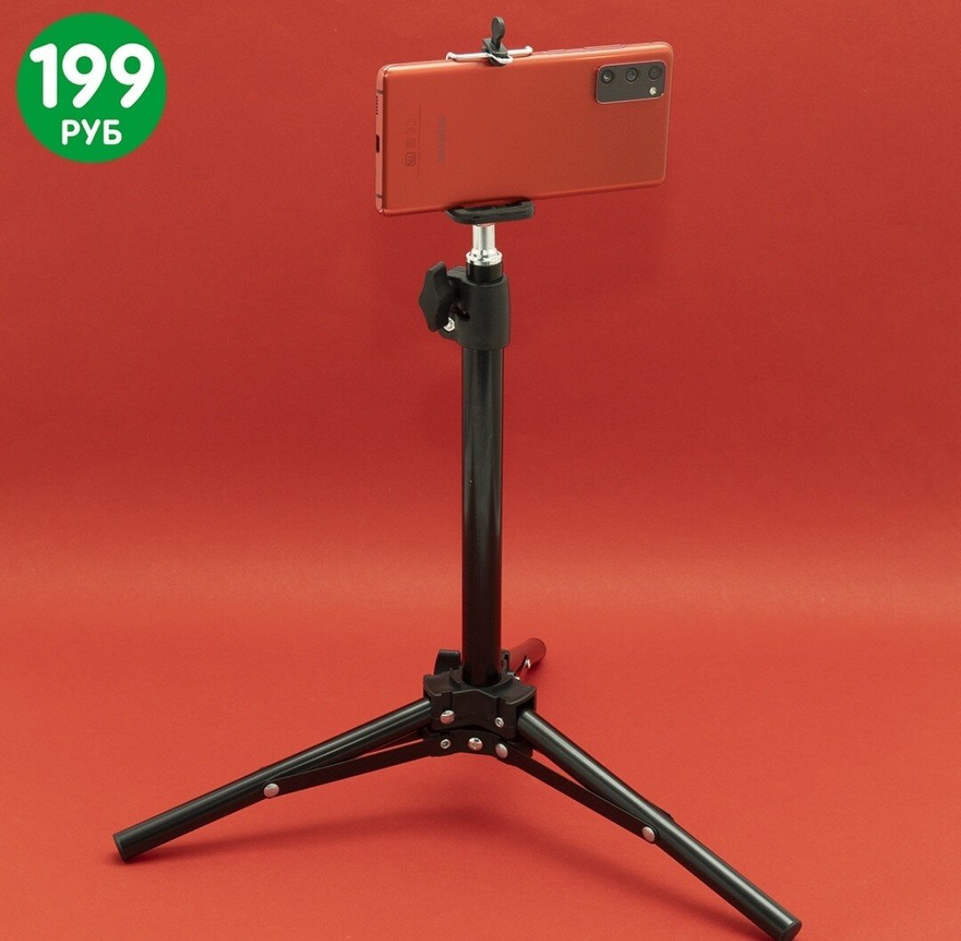 Цена 199 руб, сможет держать телефон практически любого размера за счет специального мобильного крепления.