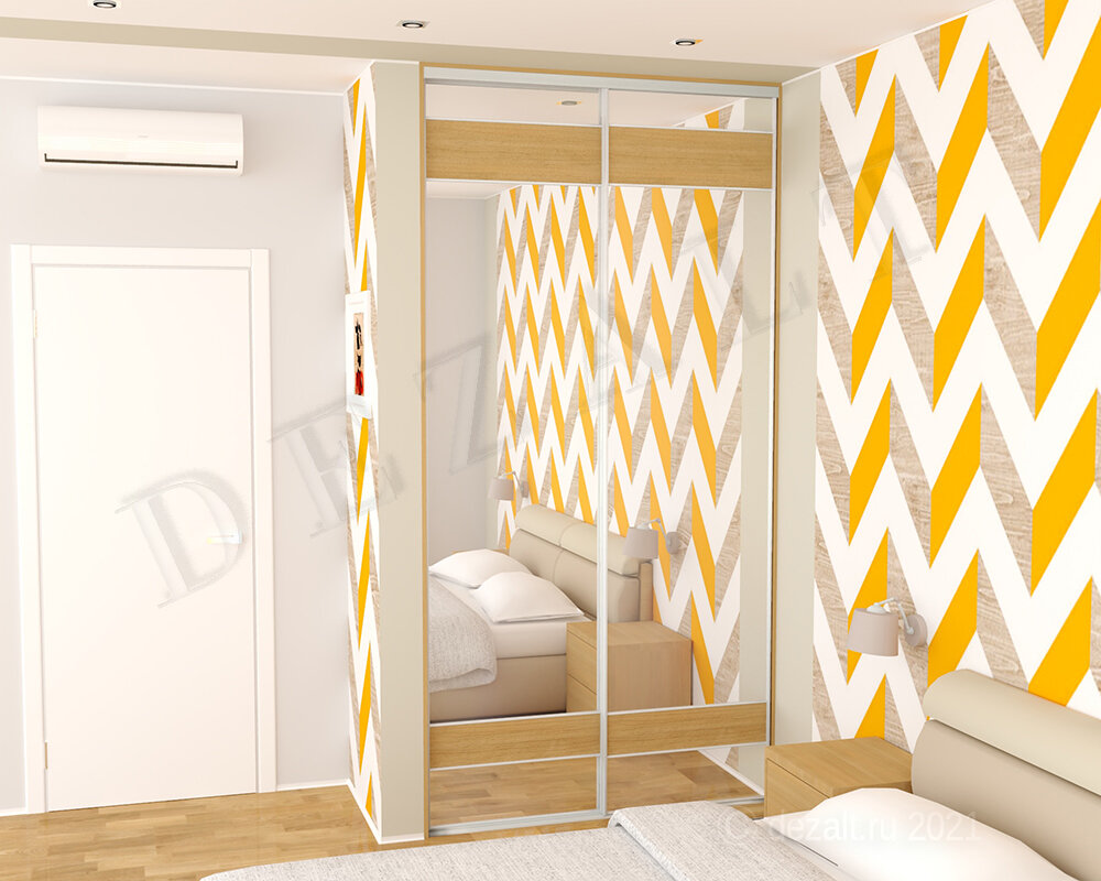 Чертежи этого шкафа у нас на сайте, переходите по ссылке - Шкаф-купе с зеркалами в спальню (dezalt.ru)