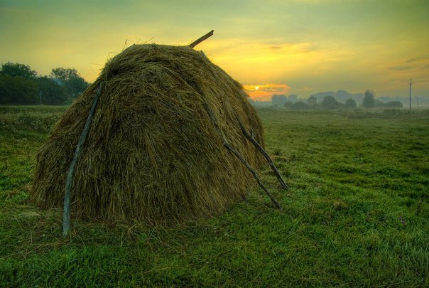 На стоге сена ночью южнойЛицом ко тверди я лежал,И хор светил, живой и дружный,Кругом раскинувшись, дрожал.Земля, как смутный сон немая,Безвестно уносилась прочь,И я, как первый житель рая,Один в лицо увидел ночь.