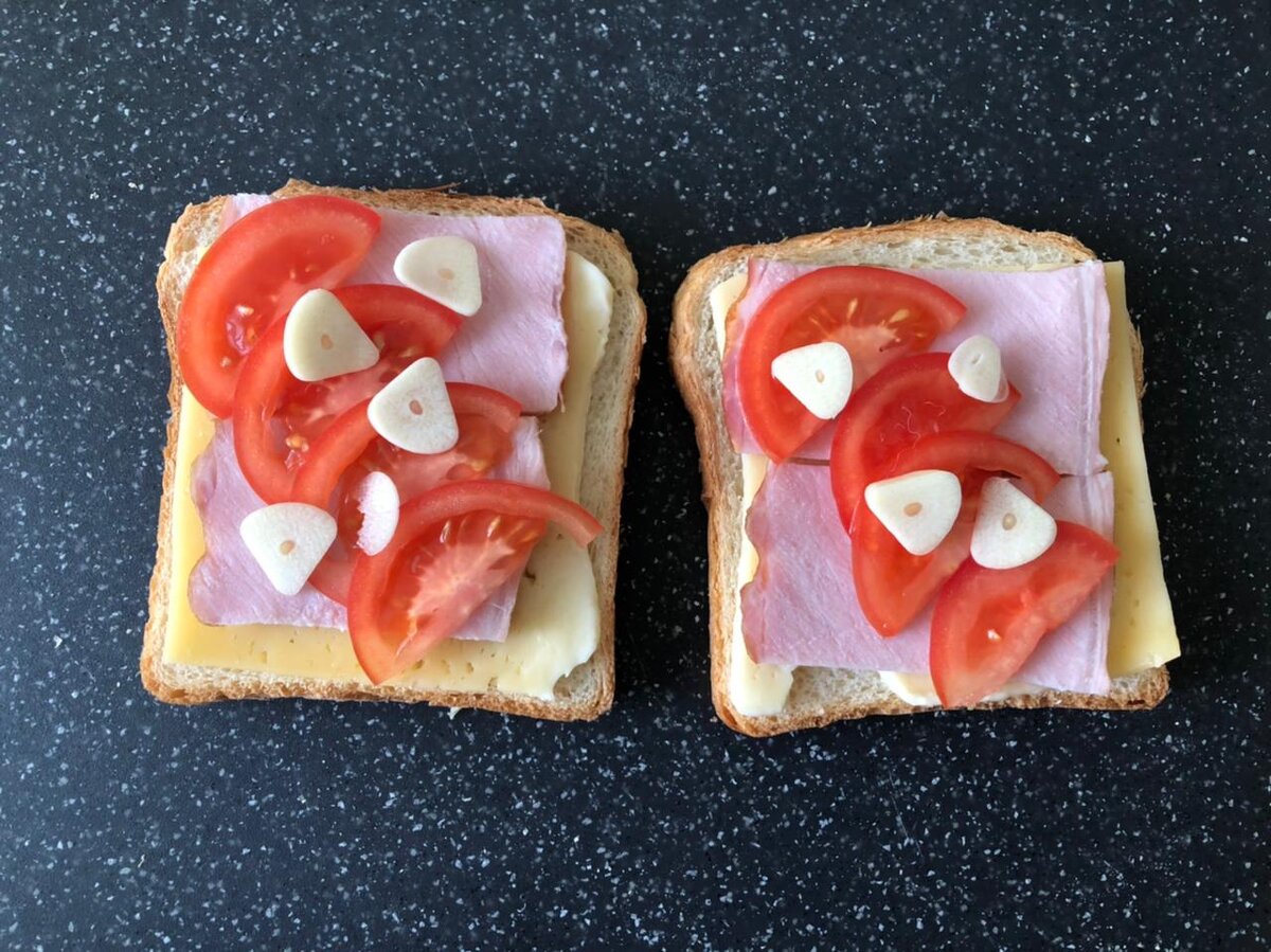 Закрываем еще раз сыром и сверху кладем второй кусочек хлеба.