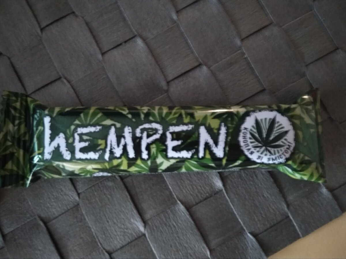 Сегодня я пошла в незнакомый мне магазин Alko1000 (Нарва, Эстония) с необычным ассортиментом. Половина продуктов были привезены из Украины, в том числе и этот батончик с коноплёй. Я не удержалась и решила попробовать сие произведение.